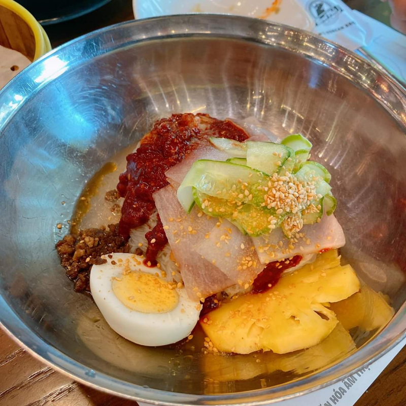 Giữa chốn phồn hoa, ồn ào của Hà Nội, tìm một không gian bình yên, lãng mạn đâu phải dễ. Nhà hàng Seoul Gobchang đáp ứng được điều đó. Nếu đang loay hoay tìm kiếm món mì trộn ngon của cuộc đời mình, bạn có thể chọn món mì trộn tại Nhà hàng Seoul Gobchang để thưởng thức. Mì trộn của địa chỉ này được bán rất chạy, vừa ngon là vừa đẹp mắt. Sợi mì dai dai kết hợp với nhiều chiếc nước sốt, topping khác nhau sẽ mang đến hương vị mới lạ, hấp dẫn cho món mì trộn. Mì trộn lòng đào vị chua chua, ngọt ngọt ăn kèm cùng thịt xá xíu, cá viên, sườn, trứng lòng đào, tôm, thịt bò,… Mì gói trụng vừa tới cần không bị mềm yểu cọng mì dai giòn có tốp mỡ và hoành thánh lá chiên siêu giòn và thơm.