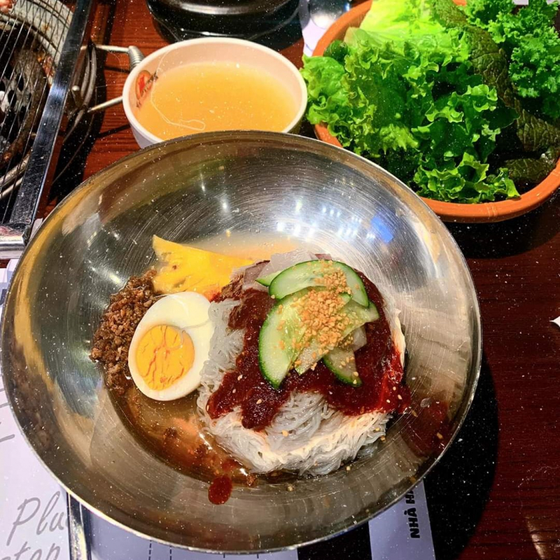 Món ăn là sự kết hợp giữa các sợi mỳ dai mềm thấm đậm vị chua ngọt của kim chi, vị cay the của ớt bột Hàn Quốc trộn lẫn với dưa leo cắt nhỏ và trứng luộc. Tất cả đã tạo cần hương vị thơm ngon, cuốn hút, khiến bạn không thể kiềm lòng mà muốn nếm thử ngay. Những món ăn kèm đặc biệt hảo hạng như Canh sườn bò Hoàng đế, mỳ trộn,.., mang trọn hương vị xứ Hàn. Bởi thế bạn có thể rủ bạn bè đến đây bao nhiêu lần thì vẫn không chán, để thử hết các món ở đây chắc bạn cũng thành khách quen của quán rồi. Nhiều người chia sẻ rằng, đã ăn ở Meat Plus Restaurant Mỹ Đình một lần thì tuyệt nhiên không muốn ăn ở đâu nữa. Bởi vì thức ăn quá ngon, phương pháp phục vụ thì hết sức nhiệt tình. Giá đồ ăn ở đây tương đối phải chăng, nếu đi đông chia đều thì mức giá này hết sức hợp lý.