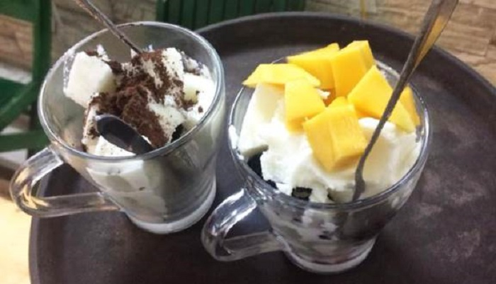 Sữa chua dẻo nghe có vẻ đơn giản, chỉ là cách kết hợp của sữa chua và gelatin để tạo độ dẻo. Tuy nhiên, làm thế nào có thể kết hợp 2 nguyên liệu ấy tạo thành một cốc sữa chua ngon như ở Sữa chua dẻo Cây Đa thì đó là cả một quá trình. Sữa chua ở đây có độ mềm, mịn nhờ pha chế chuẩn nguyên liệu, công thức chứ không hề tạo cảm giác bị cứng quá như một số quán. Hương vị không quá chua cũng không quá ngọt, tạo cảm giác dìu dịu, mát lạnh. Quán có rất nhiều hương vị cho bạn lựa chọn: ca cao, việt quất, chanh leo, matcha, nếp cẩm, bạc hà,… Nhưng có lẽ cacao là vị luôn được nhiều khách hàng yêu mến.
