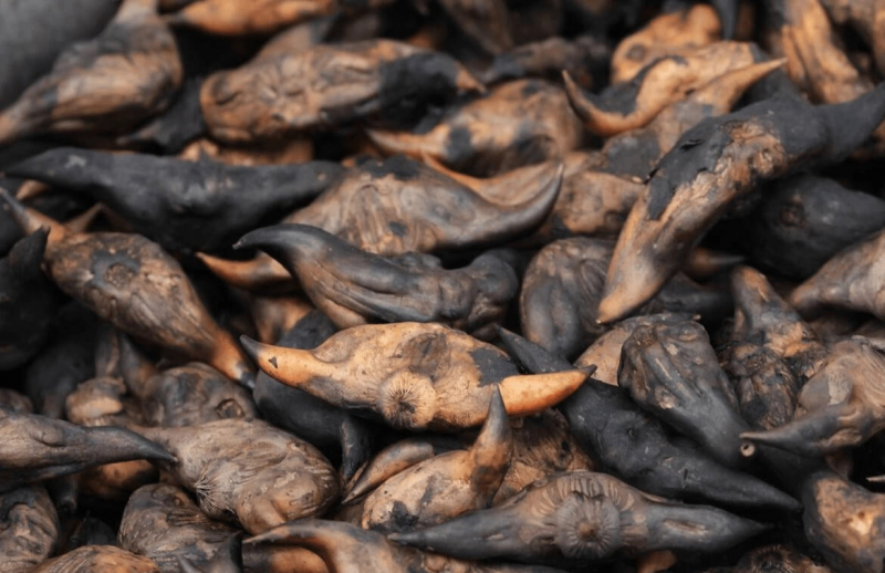 Ruột trong thì trắng vỏ ngoài thì đen.