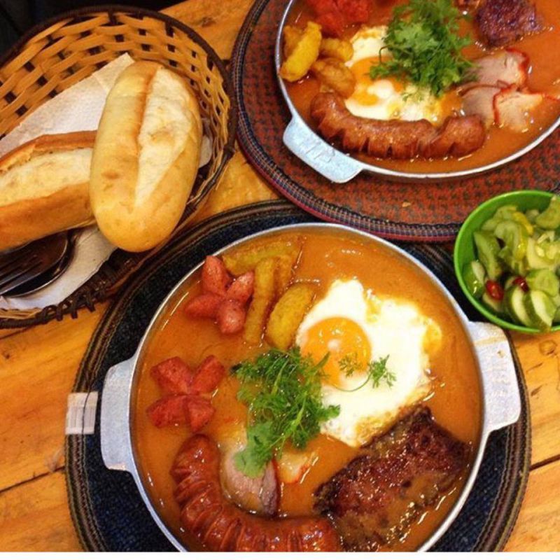 Tiếp theo sẽ là một quán ăn ành cho những bạn yêu thích các thể loại bánh mì chảo, quán Cô Thêm sẽ là lựa chọn lí tưởng cho cuộc hẹn chưa xác định điểm đến của bạn.Đến với quán cô Thêm bạn sẽ được đắm chìm trong những phần bánh mì hấp dẫn với bánh mì nóng giòn, chấm cùng nước sốt đậm vị lan tỏa hương thơm và vị ngon. Quán có mức giá tầm trung, không gian thoải mái và nhân viên nhiệt tình.