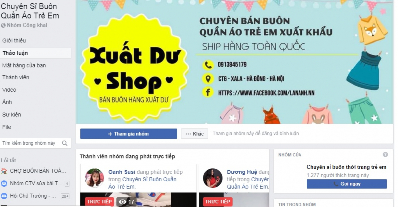 Đây là nhóm dành cho những shop buôn bán quần áo trẻ em, với hơn 622 nghìn thành viên trên khắp các tỉnh thành, đây quả là một group lý tưởng cho những ai đang và sắp có ý định kinh doanh mặt hàng thời trang trẻ em này. Bạn cũng có thể vào nhóm để tìm mói sỷ lẻ giá tốt nếu có ý định mở cửa hàng nhé.