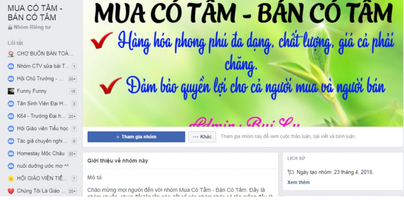 Có rất nhiều nhóm dành cho đa dạng cách loại mặt hàng. Dưới đây là nhóm mua bán có lượng tương tác tốt nhất hiện nay. Người mua hàng lịch sự, tỷ lệ bom hàng rất thấp, người bán hàng uy tín chất lượng. Đặc biệt đội ngũ BQT hoạt động tích cực để luôn đứng ra đảm bảo quyền lợi cho cả người mua và người bán.